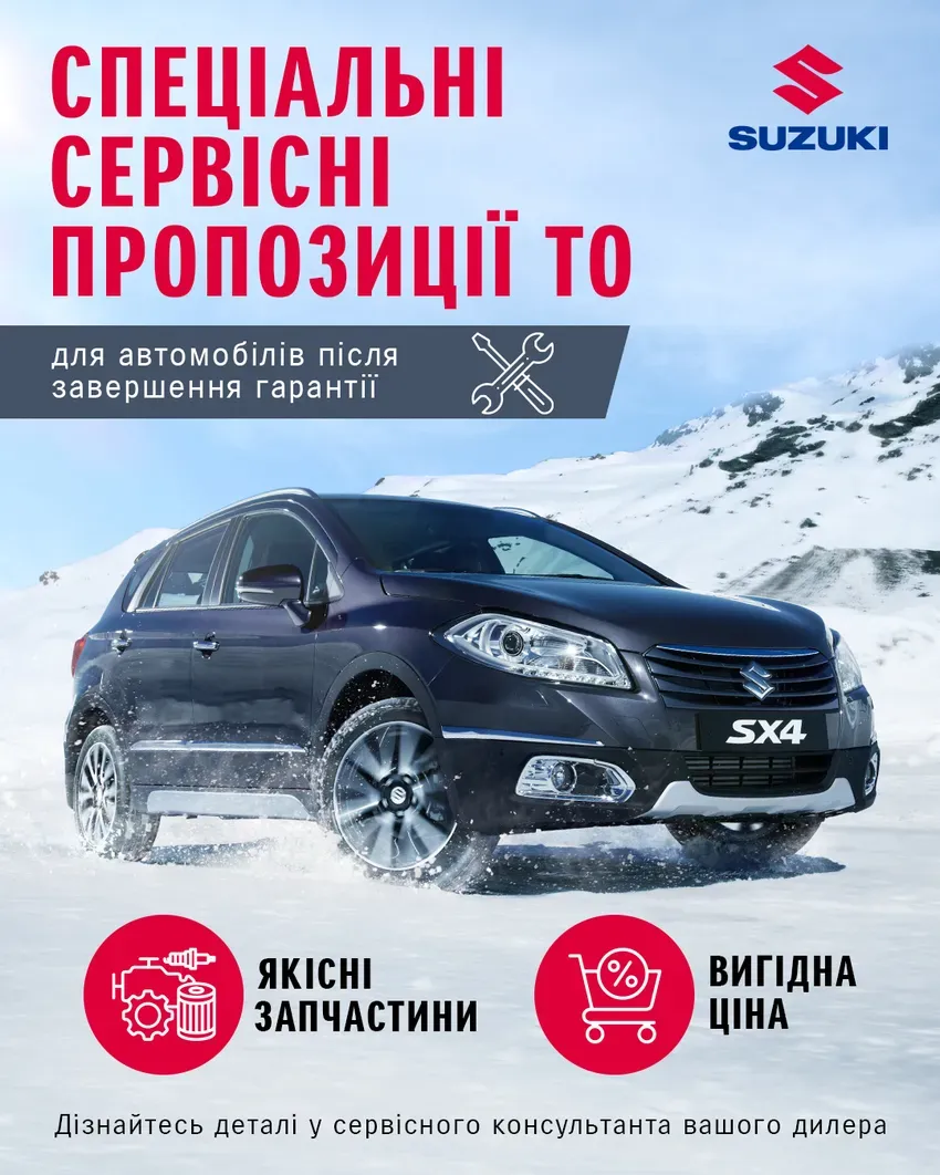 ТОВ "Моторком+", офіційний дилер автомобілів SUZUKI в Україні, з 19 січня 2026 року запускає спеціальні сервісні пропозиції для технічного обслуговування автомобілів, гарантійний термін експлуатації яких, закінчився.